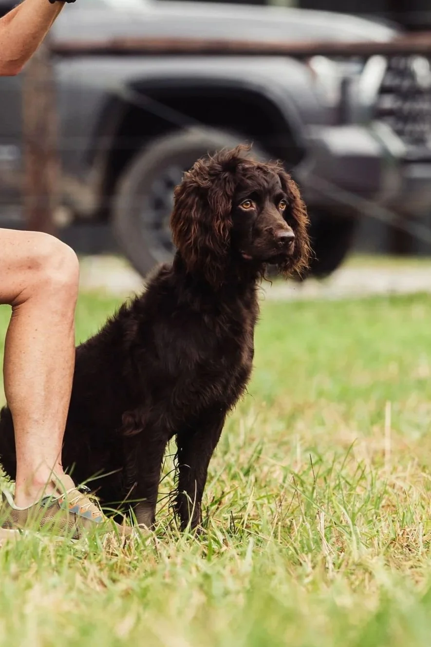 SHR SGA's Valley Way "Tula" has carved out such a big spot in our entire families life. She is without a doubt the sweetest of all of our dogs. She is extremely well with kids and she will take any opportunity to jump in the water. Tula has the ability to cuddle up on the couch at night but she knows when to flip the switch when training as she is one of the quickest when it comes to retrieving. She is the shortest in the group but she is also the heaviest female at 39 pounds so she is very stocky with one of the “blockier” faces you will see on a female. Tula’s coat ranges from a heavy wave to a light curl depending on the time of year.